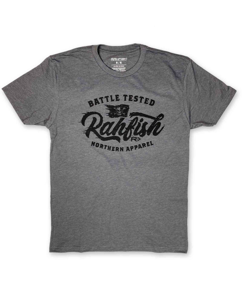 Quite possibly our most comfortable tshirt yet! A 60 / 40 blend, our Battle Tested heather metal tee is fitted and soft and features our Battle Tested design.
